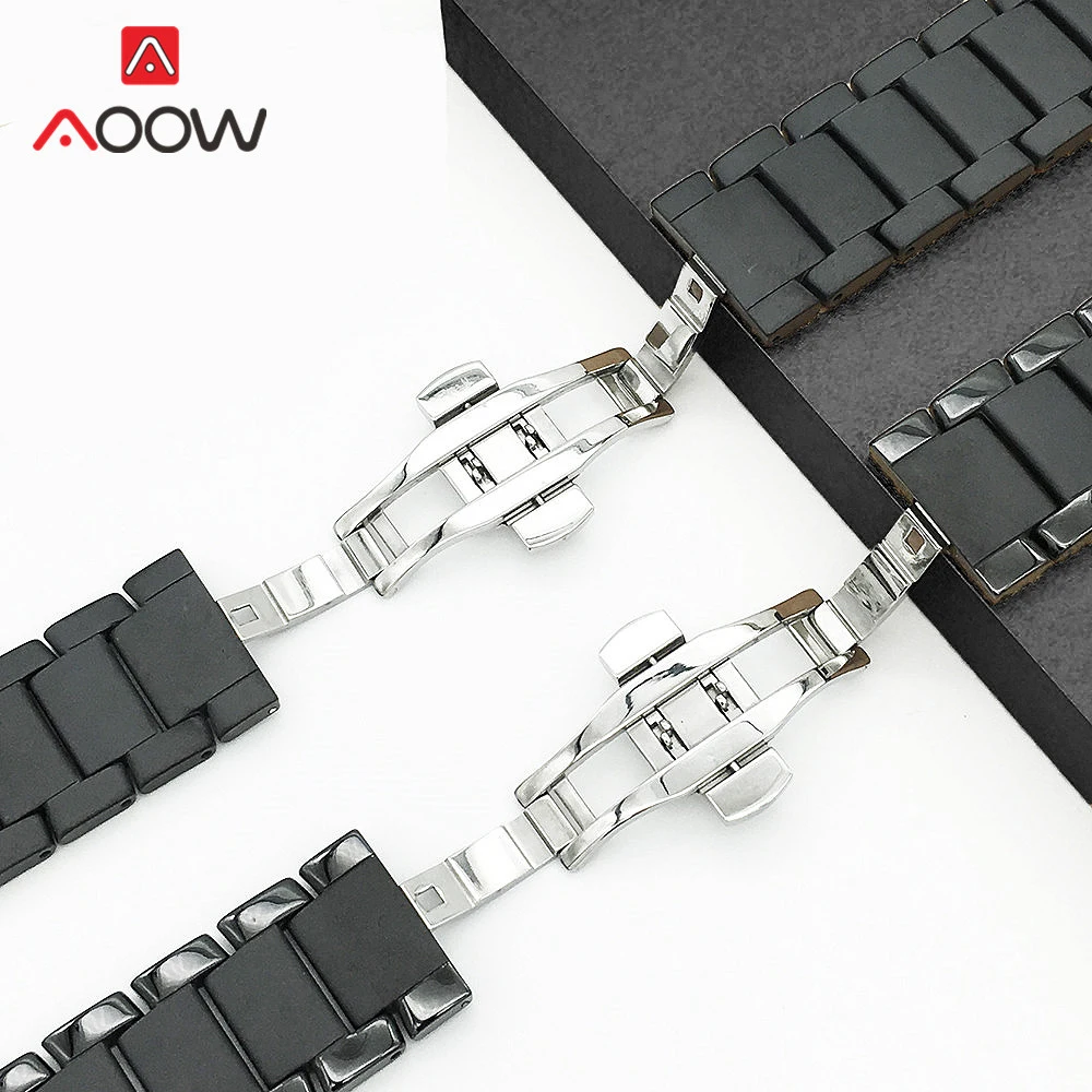 Бренд: AOOW Материал ремешка: керамика Ширина ремешка: 20 мм, 22 мм Подходящая модель (20 мм): подходит для Samsung Galaxy Watch3 41 мм/Active / Active2 / 42 мм версии, Gear Sport / S2 Classic, Garmin vivoactive 3/vivomove HR, huawei watch 2, Huami Amazfit BIP Youth, Amazfit GTR 42 мм, Amazfit GTS Подходящая модель (22 мм): подходит для Samsung Galaxy Watch3 45 мм/46 мм, Gear S3, Huawei GT 2 46 мм, Honor Watch Magic, Huami Amazfit pace, Amazfit stratos, amazfit GTR 47 мм Цвет ремешка: черный, белый Цвет пряжки: серебристый Тип пряжки: Пряжка-бабочка Группа Вес: 0,1 кг Посылка включает в себя: 1 x ремешок для часов с пружинными полосками (часы в комплект не входят)