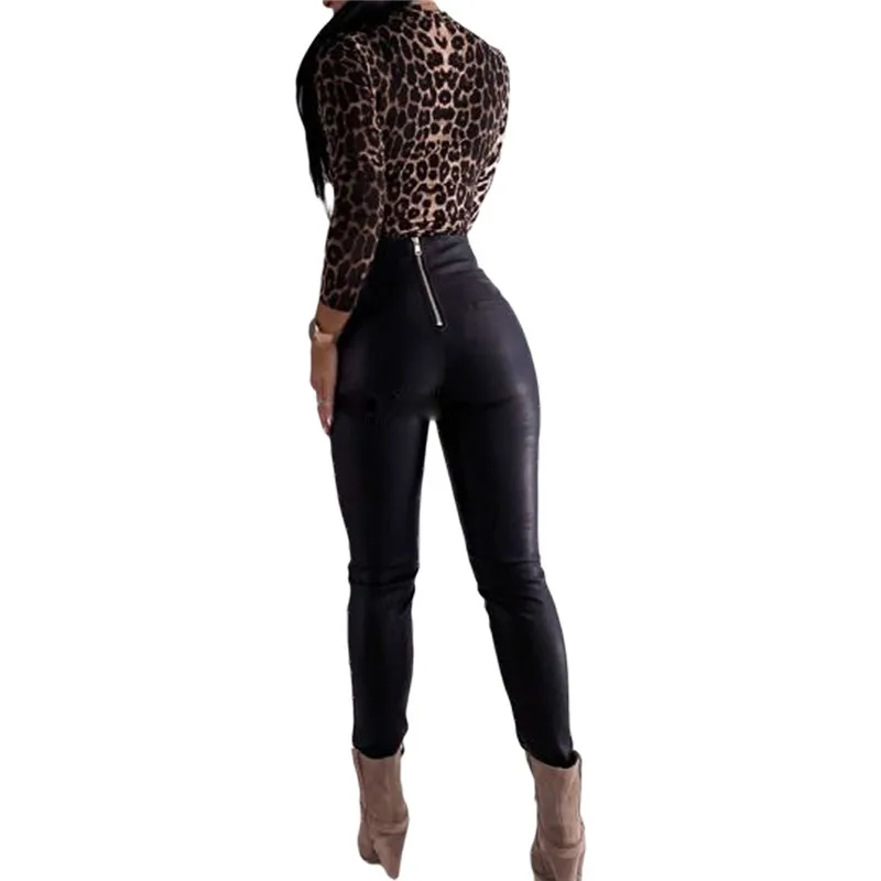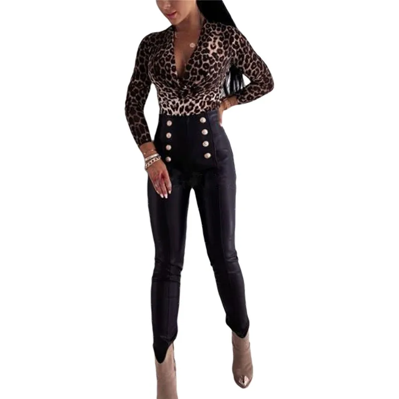 Женское боди с леопардовым принтом обтягивающее V-образным вырезом и