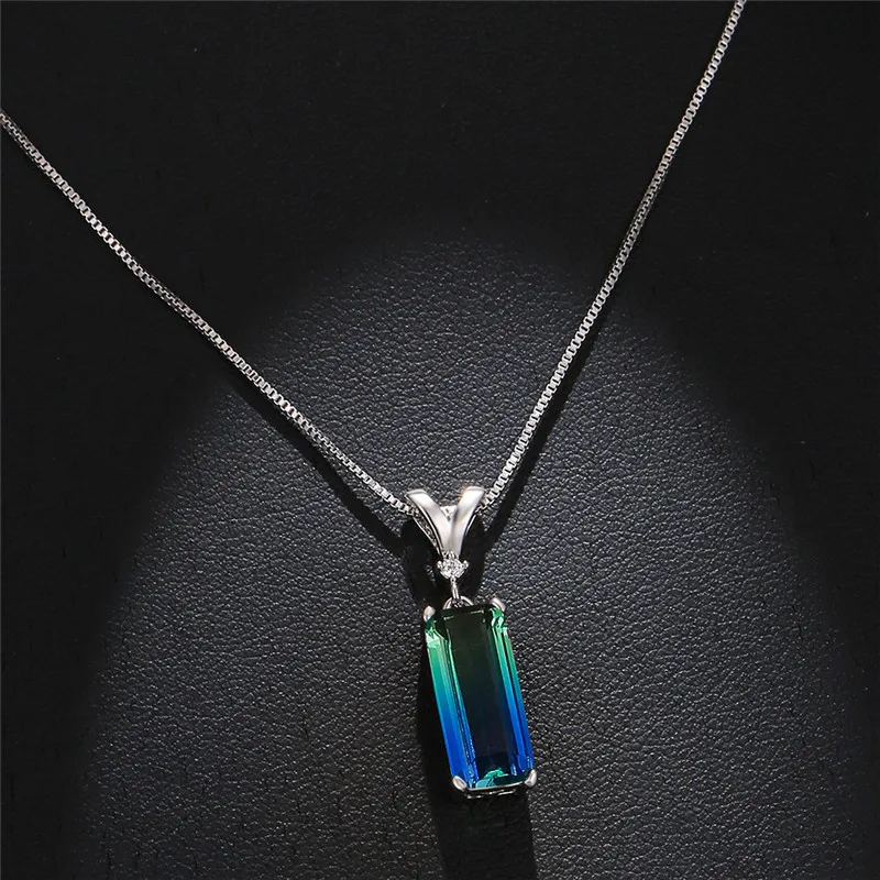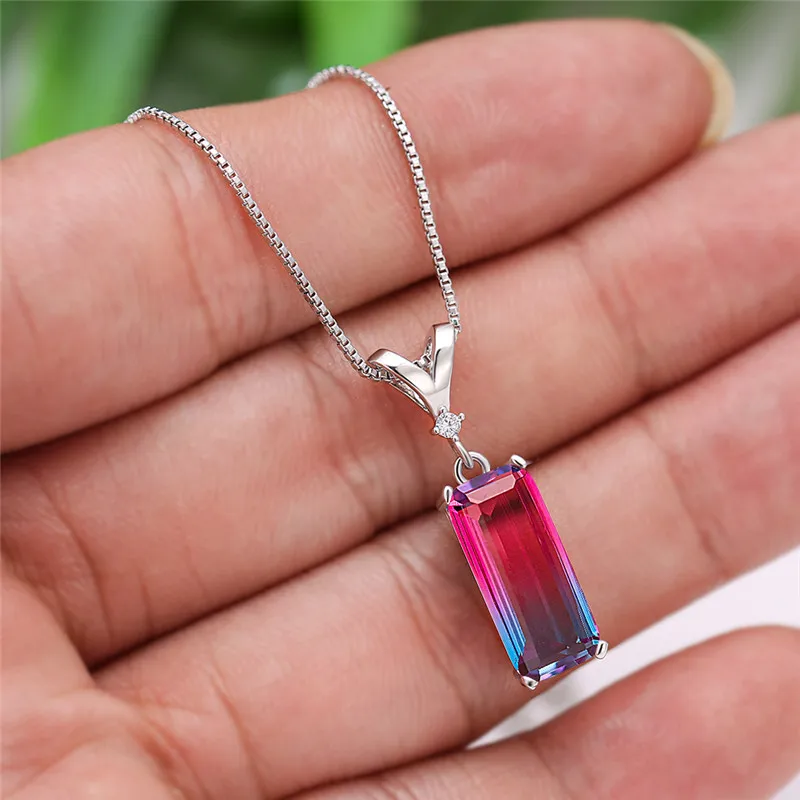 Ожерелье женское с подвеской из радужного камня винтажное серебристого цвета