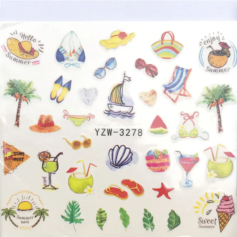 GAM-BELLE 1 лист воды наклейки для ногтей фрукты цветок листья простые DIY украшения для ногтей Переводные слайдеры наклейки инструмент для маникюра