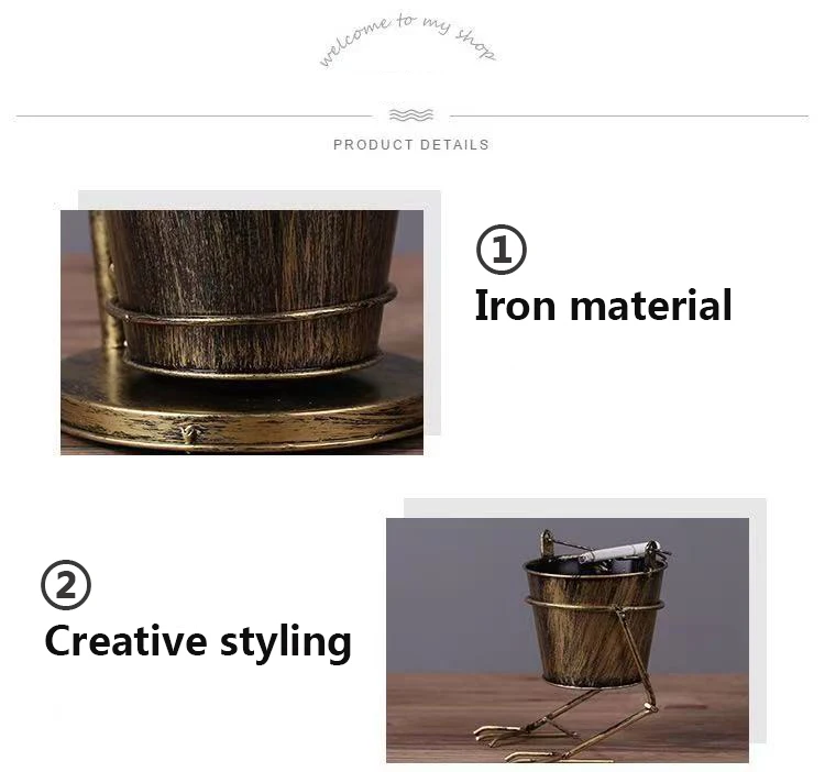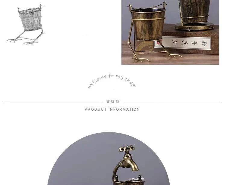 ③ Старое, зрелое мастерство сварки железа, форма и цвет ручной работы сделаны мастерами, продукция умышленно стара, и каждая часть тщательно отполирована, цветущая очарование ретро. ④Бочонок и подставка могут быть разделены, и бочонок используется для других целей, таких как посадка суккулентов или хранение мелких предметов, что очень практично.