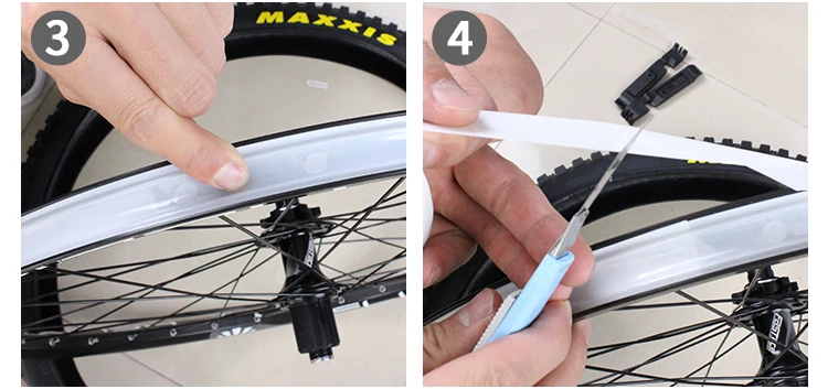 3: во время процесса намотки, вам нужно потянуть его трудно сделать прокладку шины прилипает к ободу гладко, и внутри не должно быть пузырьков воздуха.
