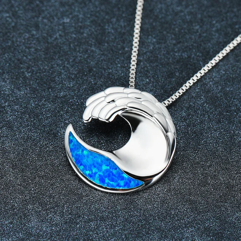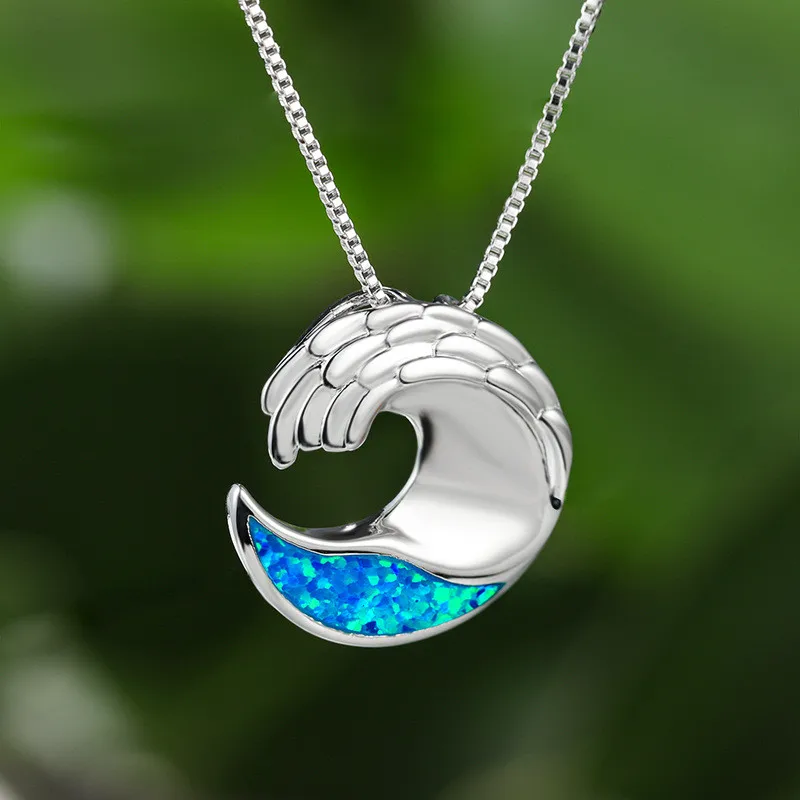 Модное ожерелье с кулоном в виде морской волны геометрическое из голубого