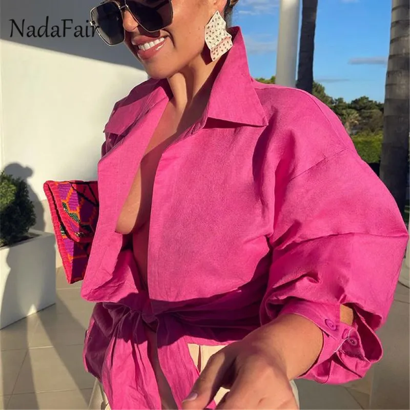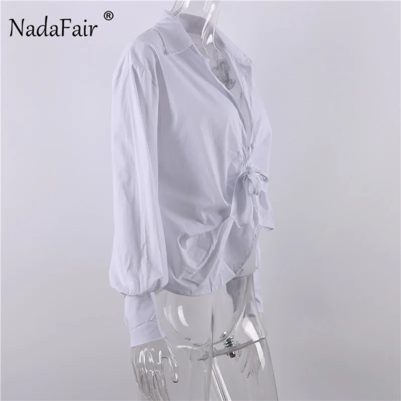 Nadafair/сексуальная блузка большого размера с бантом и завязками белая