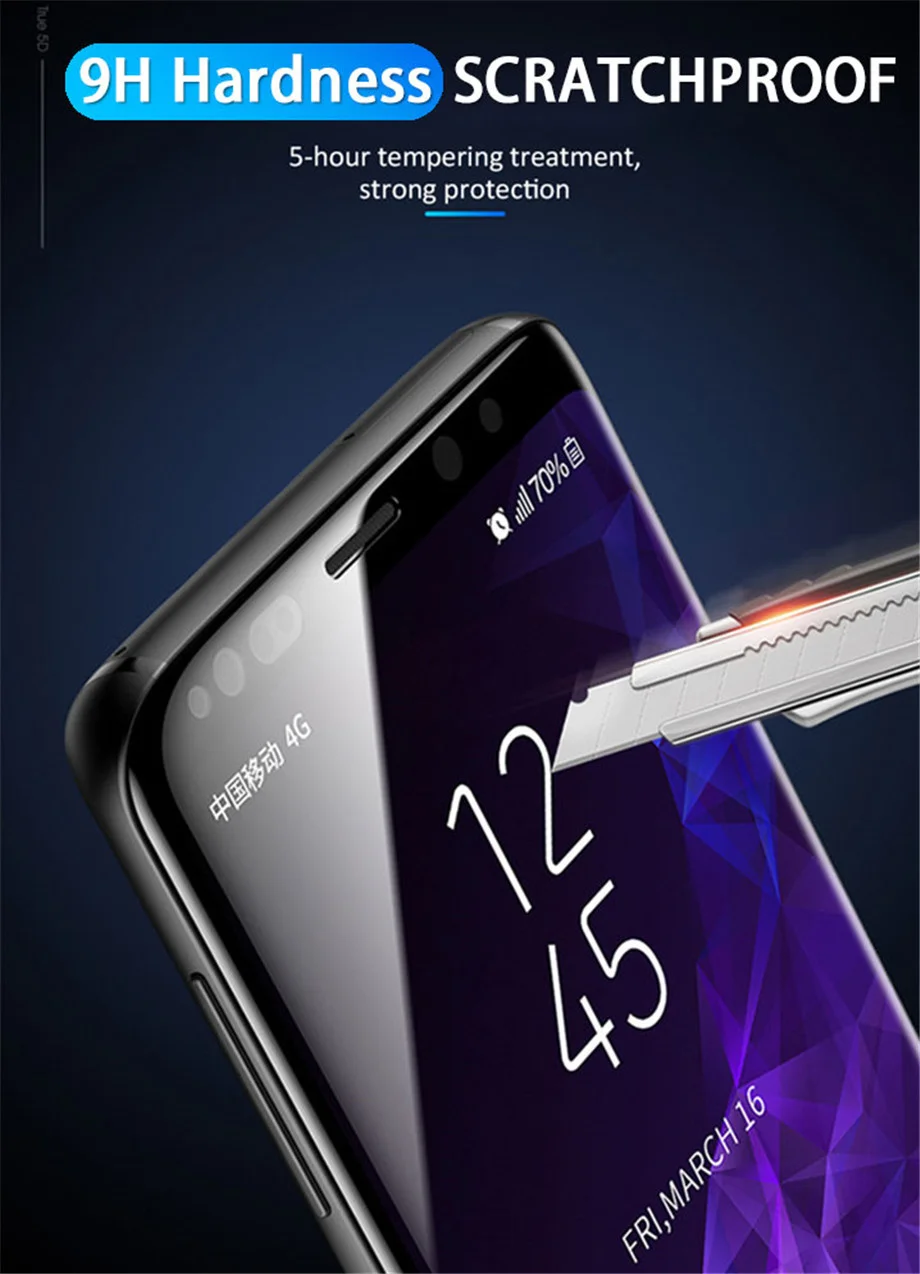 Закаленное стекло с изогнутым полным покрытием для защиты экрана Samsung Galaxy S9 S8 Plus S7 S6 Edge и Note 8