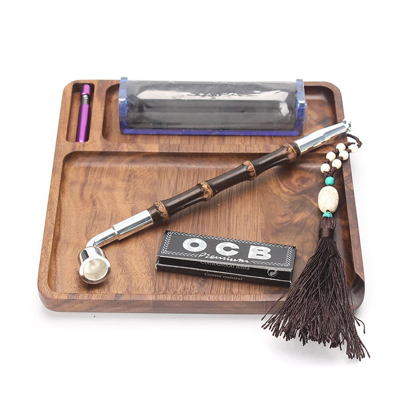 Бамбуковые деревянные роликовые подносы черный орех курительная