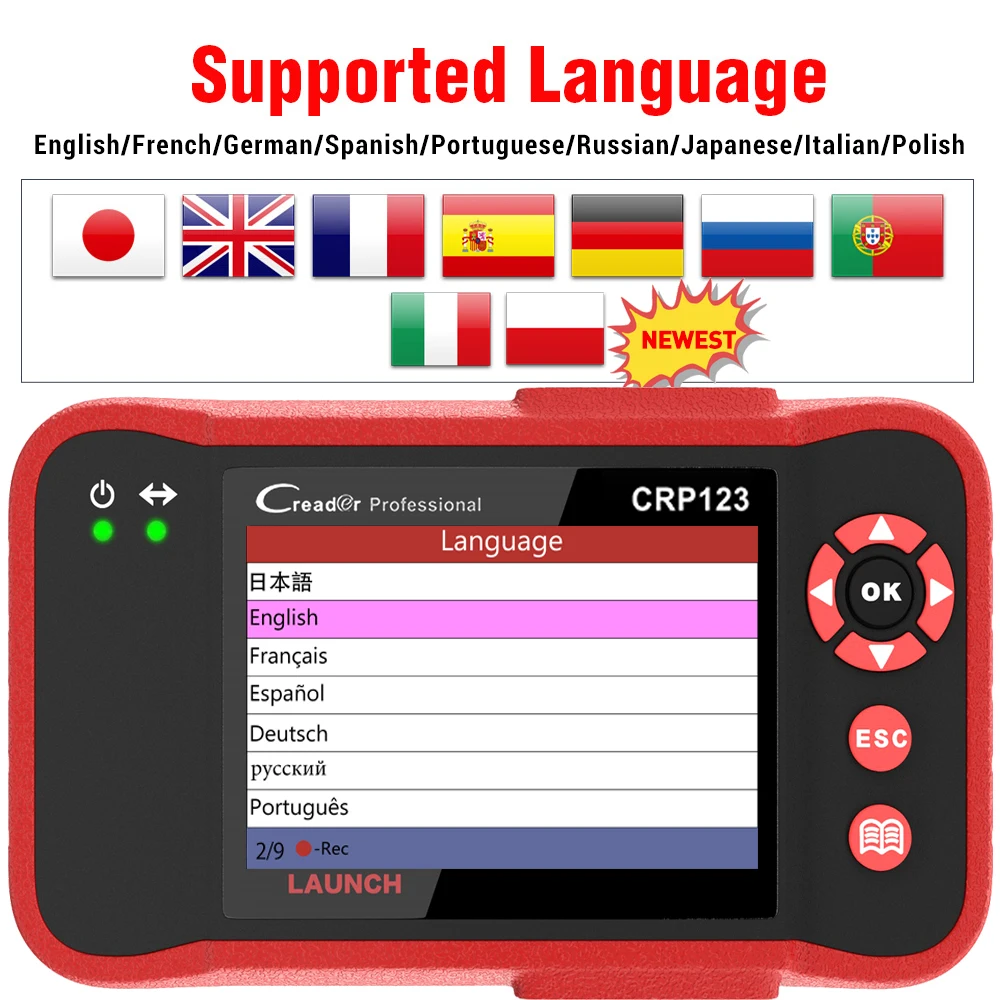 LAUNCH X431 CRP123 obd2 сканер Авто считыватель кодов двигателя/ABS/SRS/трансмиссия диагностический инструмент для автомобилей бесплатное обновление pk CRP123E