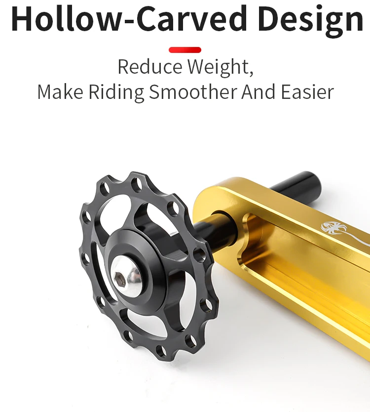 Этот продукт изготовлен из алюминиевого сплава и обрабатывается по технологии CNC. Продукт легкий и повышает его прочность. Полый дизайн, тонкое мастерство, предотвращает падение цепи и уменьшает ощущение зуба