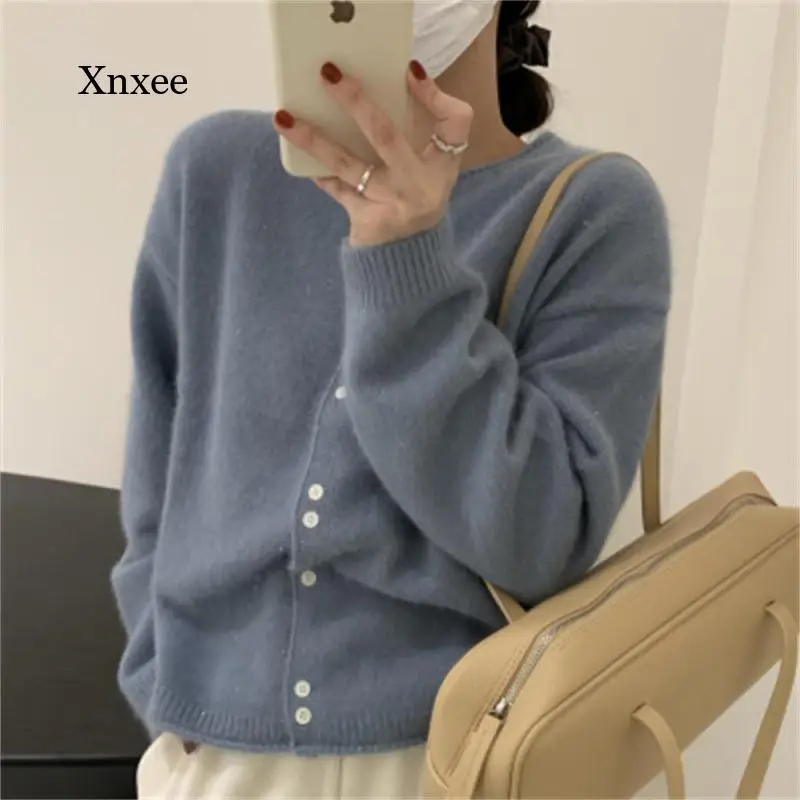 Зимний свитер в ленивом стиле модный Женский вязаный кардиган ретро