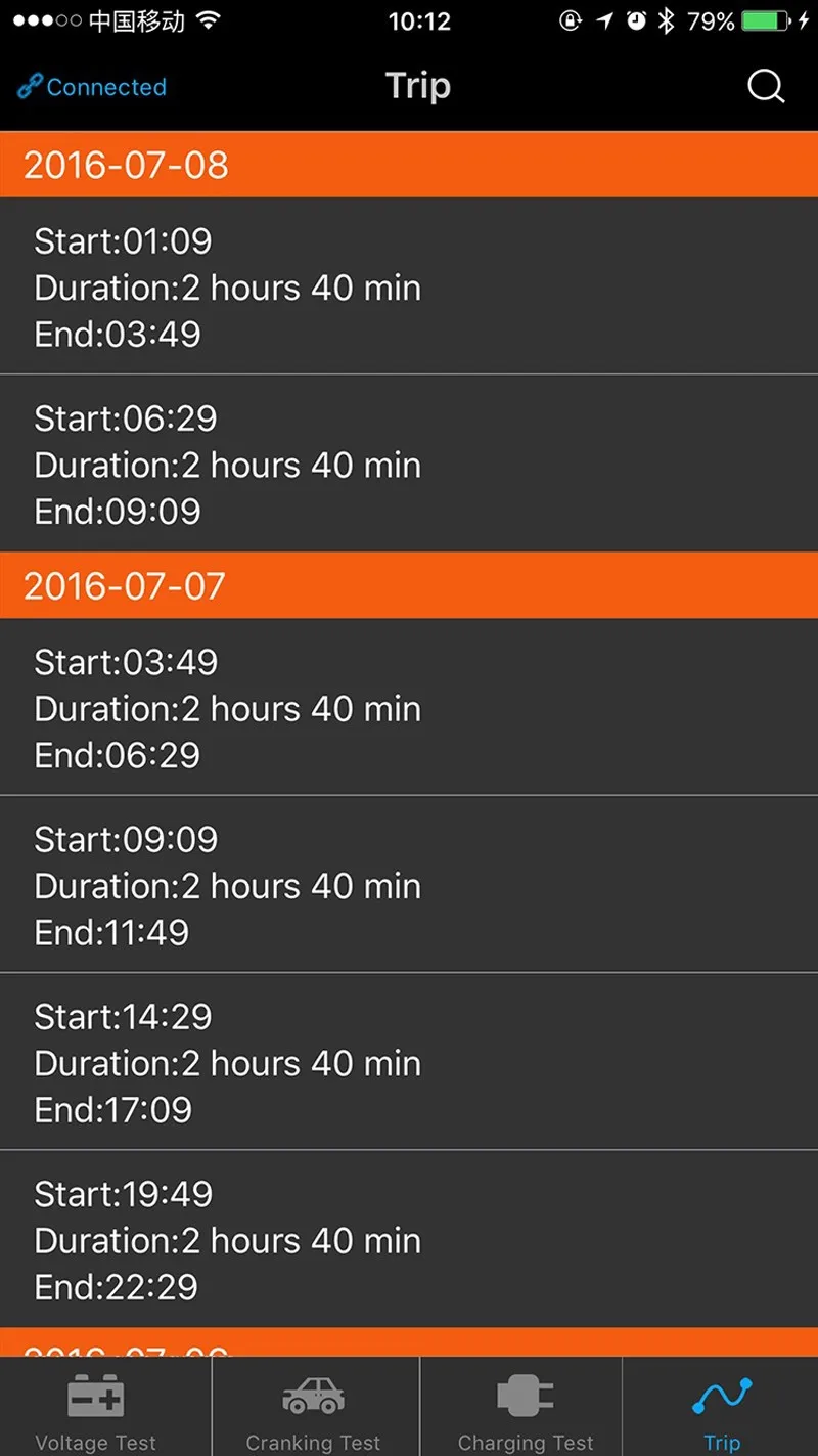 4. Мониторинг Работы аккумулятора транспортного средства histroy и отзывы о поездке для вас в любое время.