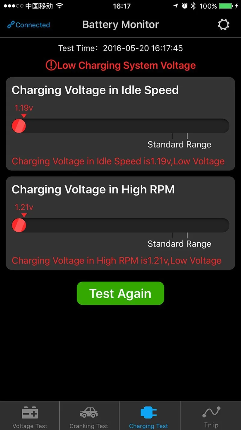 A4: это первый автомобильный монитор батареи в режиме реального времени на вашем телефоне и показывает График напряжения батареи, это лучше, чем ручной тестер батареи.