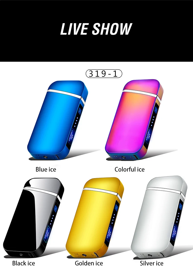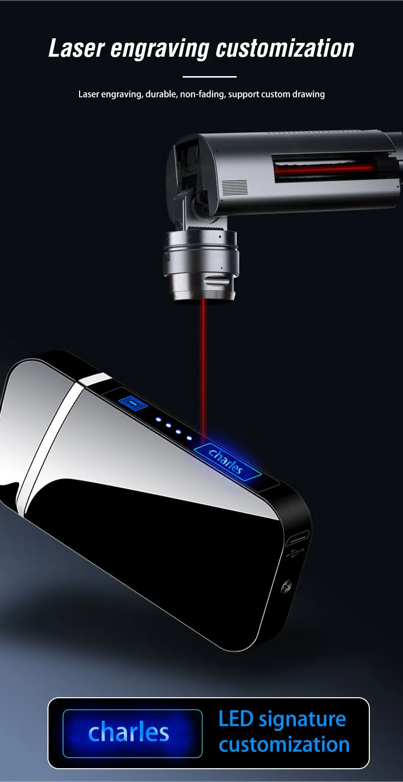 Металлическая электронная USB Зажигалка, ветрозащитная, двойная дуга, перезаряжаемая, беспламенная, плазменная зажигалка, светодиодный дисплей, для курения, гаджет, подарок для мужчин