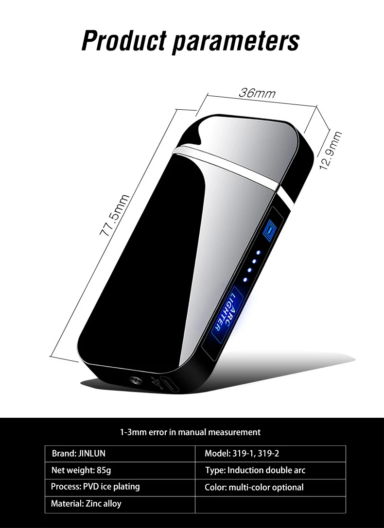 Металлическая ветрозащитная плазменная зажигалка с двойной дугой - купить