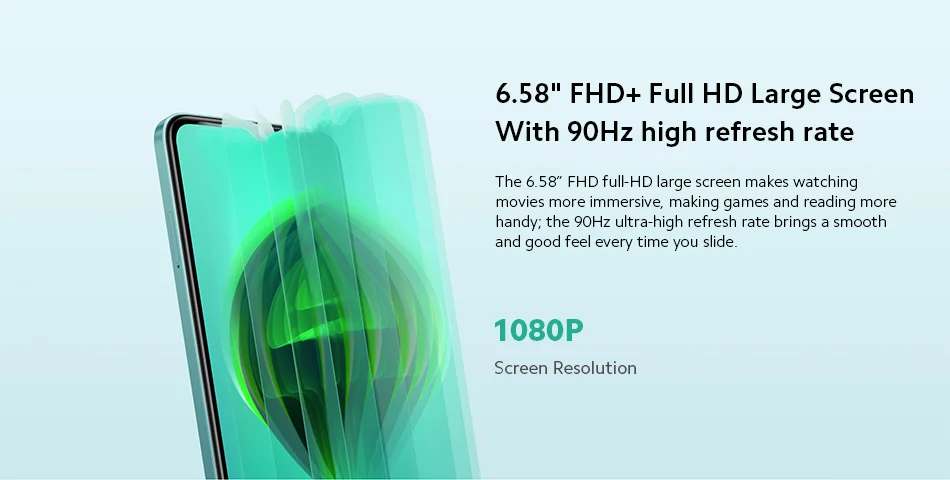 Экран: 6,58 дюймовый экран, 2408x1080 FHD +, частота обновления экрана 90 Гц