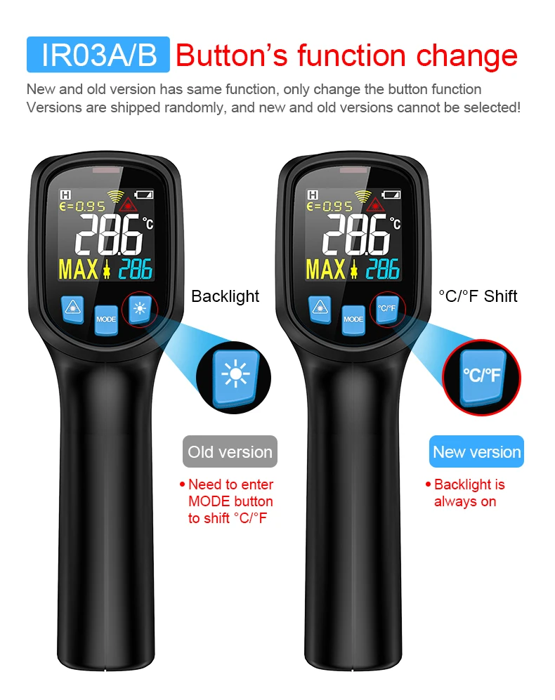 IR02C:-50 ~ 800C, измерение температуры зонда, температура окружающей среды:-10 ~ 60C, влажность: 0% ~ 100% RH, точка росы плесени