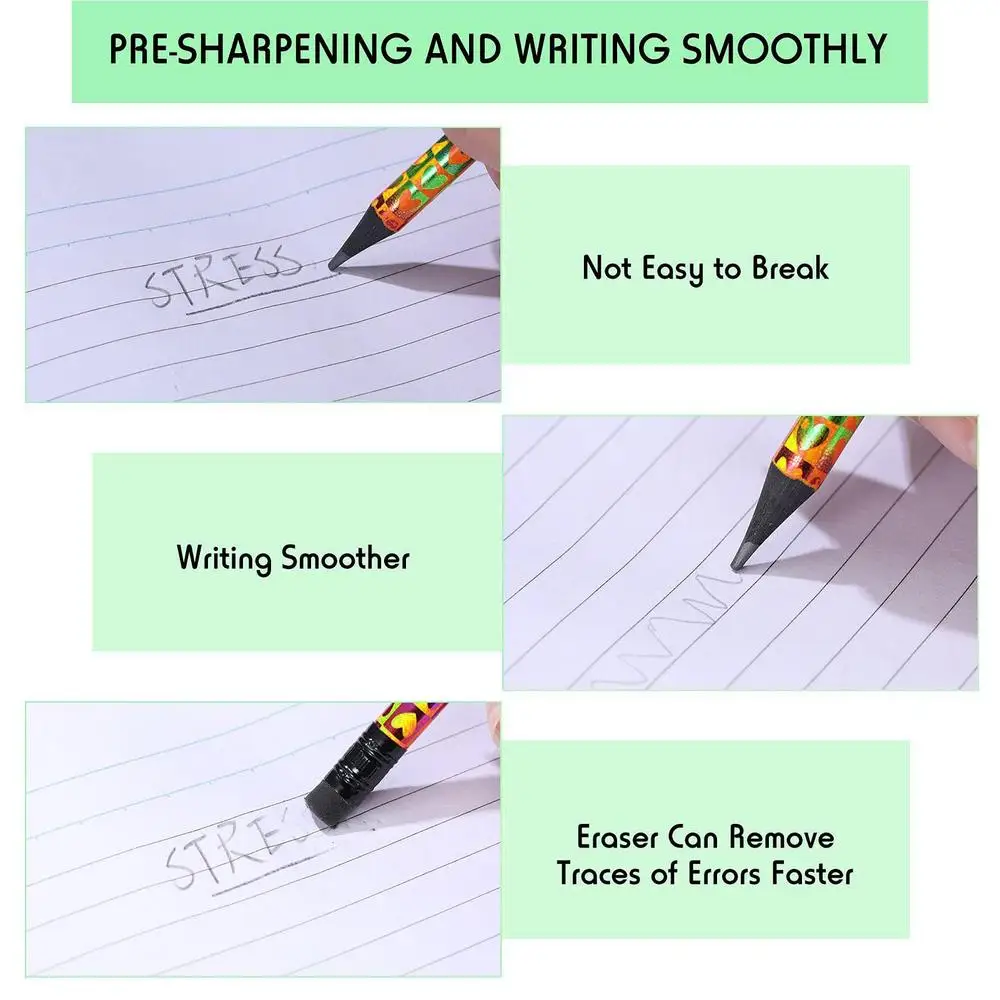 1.【 высококачественный материал 】изготовлен из высококачественной древесины. Сильный-средний-Мягкий Свинец производит долговечные, гладкие, Легко читаемые штрихи