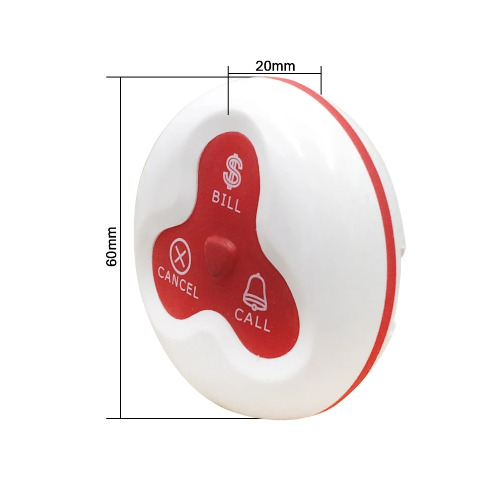 Кнопки вызова должны работать с приемниками. Кнопки вызова-это только передатчики, приемник часов или светодиодный экран-панели-приемники.Описание:Спасибо за посещение нашей веб-страницы с кнопками беспроводного вызова.Теперь Наши беспроводные системы вызова широко используются в фаст-фудах, пищевых кортах, клиниках, церкви, больницах, спа и салонах, автомагазинах или других случаях очереди. Они приветствуются и популярны.Преимущества:Экономия затрат на рабочую силуУлучшение изображения обслуживанияСамое главное, повышение эффективностиКак использовать:Во-первых, кнопки вызова вставляются или ставятся на стену или на стол, когда у гостей есть какие-либо услуги, он или она нажимает кнопки вызова, приемник (светодиодный экран или пейджер часов) получите сигнал с вибрацией или звуком, показывая номер таблицы, Тогда официант будет знать, какой стол будет подан.Характеристики: