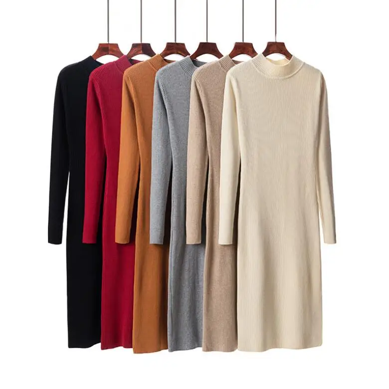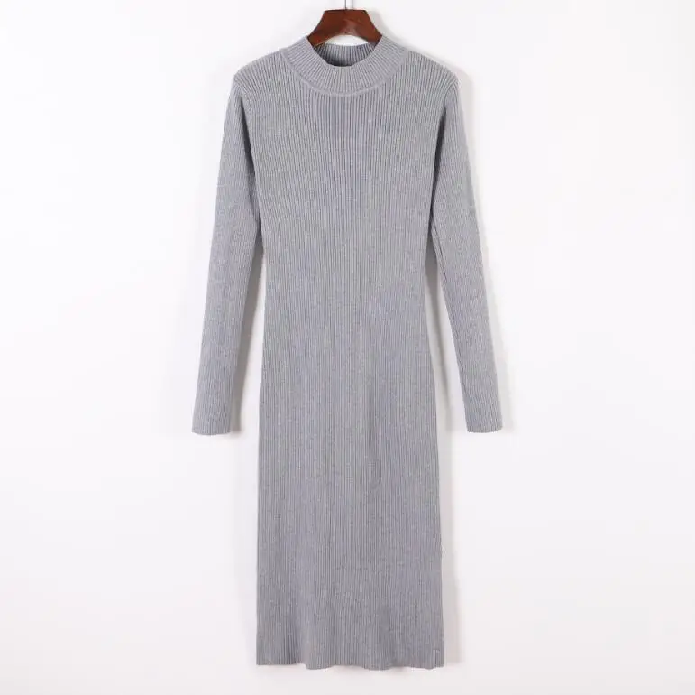 Женское трикотажное платье свитер облегающее с длинным рукавом в