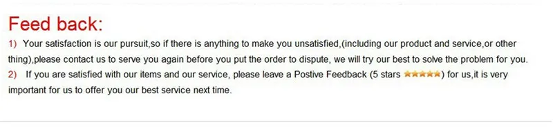 Return Policy | If the product you receive is not as described or low quality, the seller promises that you may return it before order completion (when you click "Confirm Order Received" or exceed confirmation timeframe) and receive a full refund. The return shipping fee will be paid by you. Or, you can choose to keep the product and agree the refund amount directly with the seller. N.B.: If the seller provides the "Longer Protection" service on this product, you may ask for refund up to 15 days after order completion. |