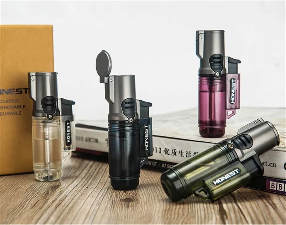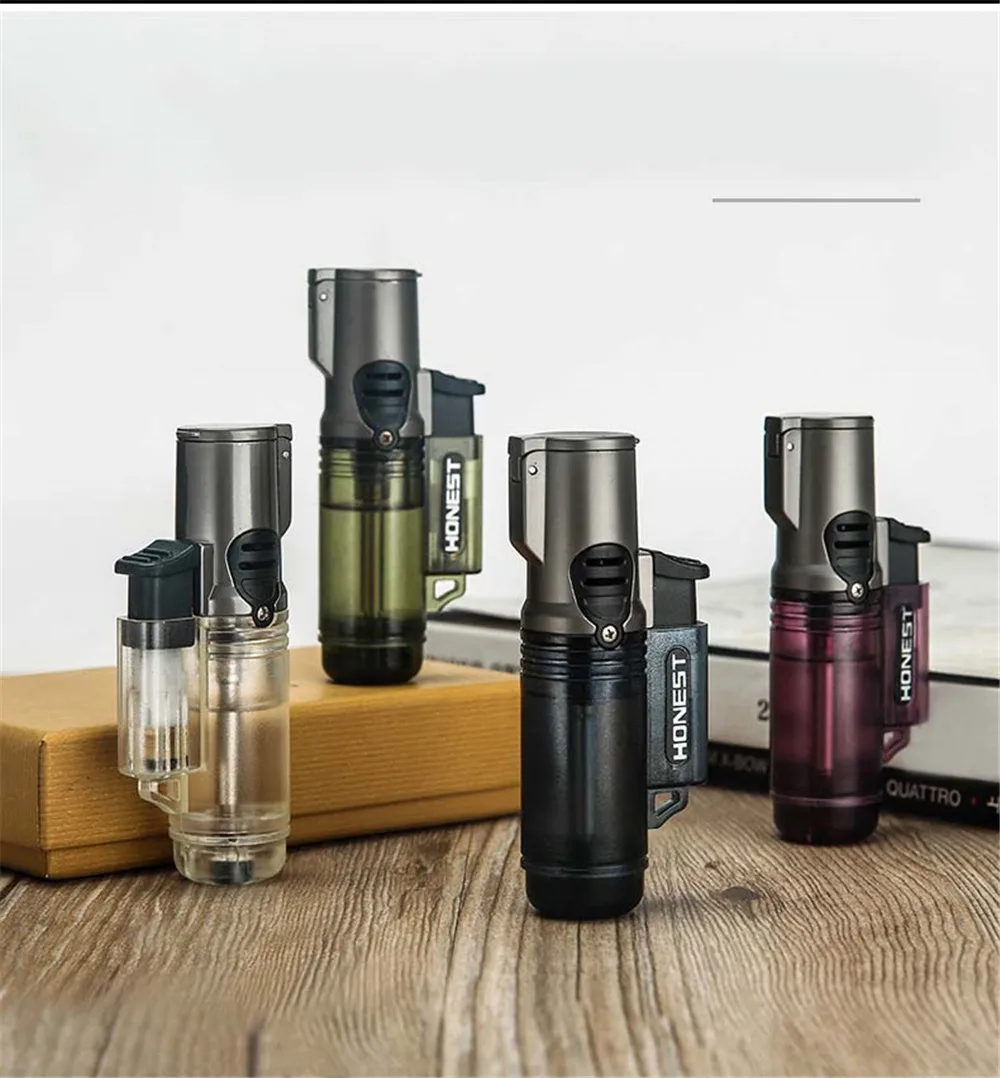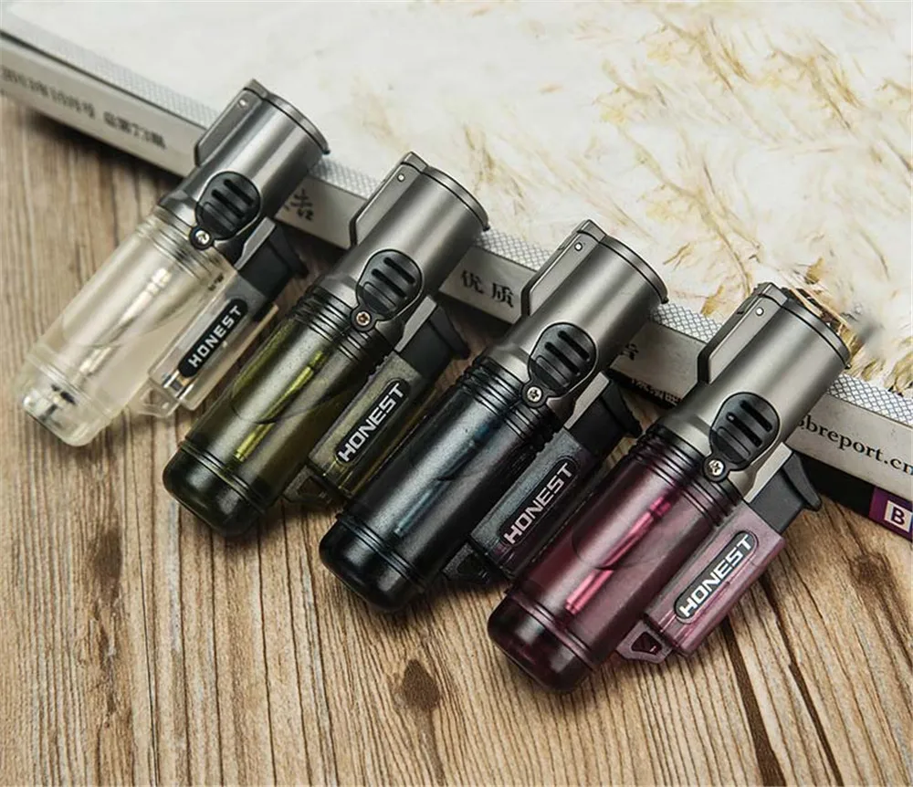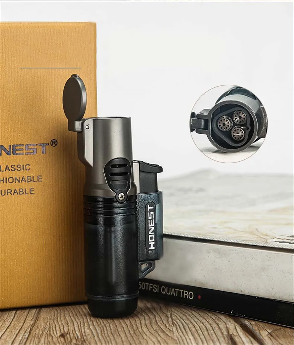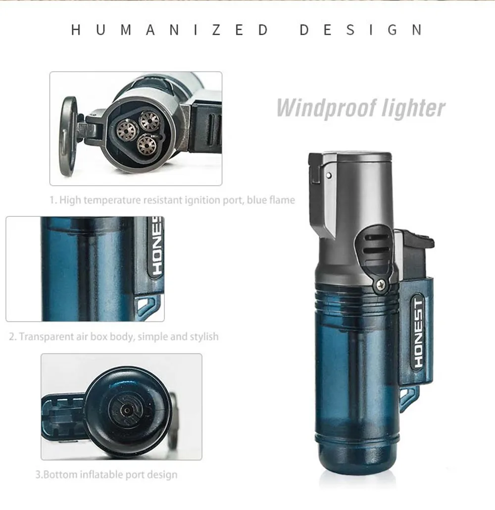 Новинка, синий фонарь, зажигалка для барбекю, 3 Jet, газовая зажигалка для сигар, турбо, ветрозащитная, мощный распылитель, кухонная трубка, Флинт, зажигалка для кемпинга на открытом воздухе