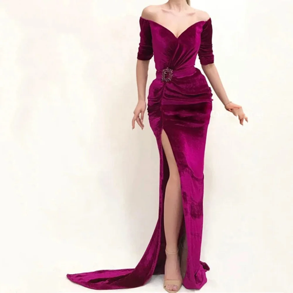 Женское вечернее платье с разрезом Gloden голубое блестящее ТРАПЕЦИЕВИДНОЕ